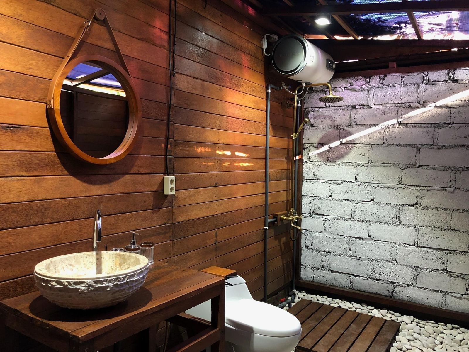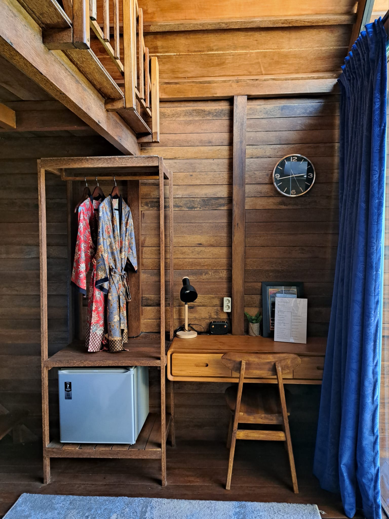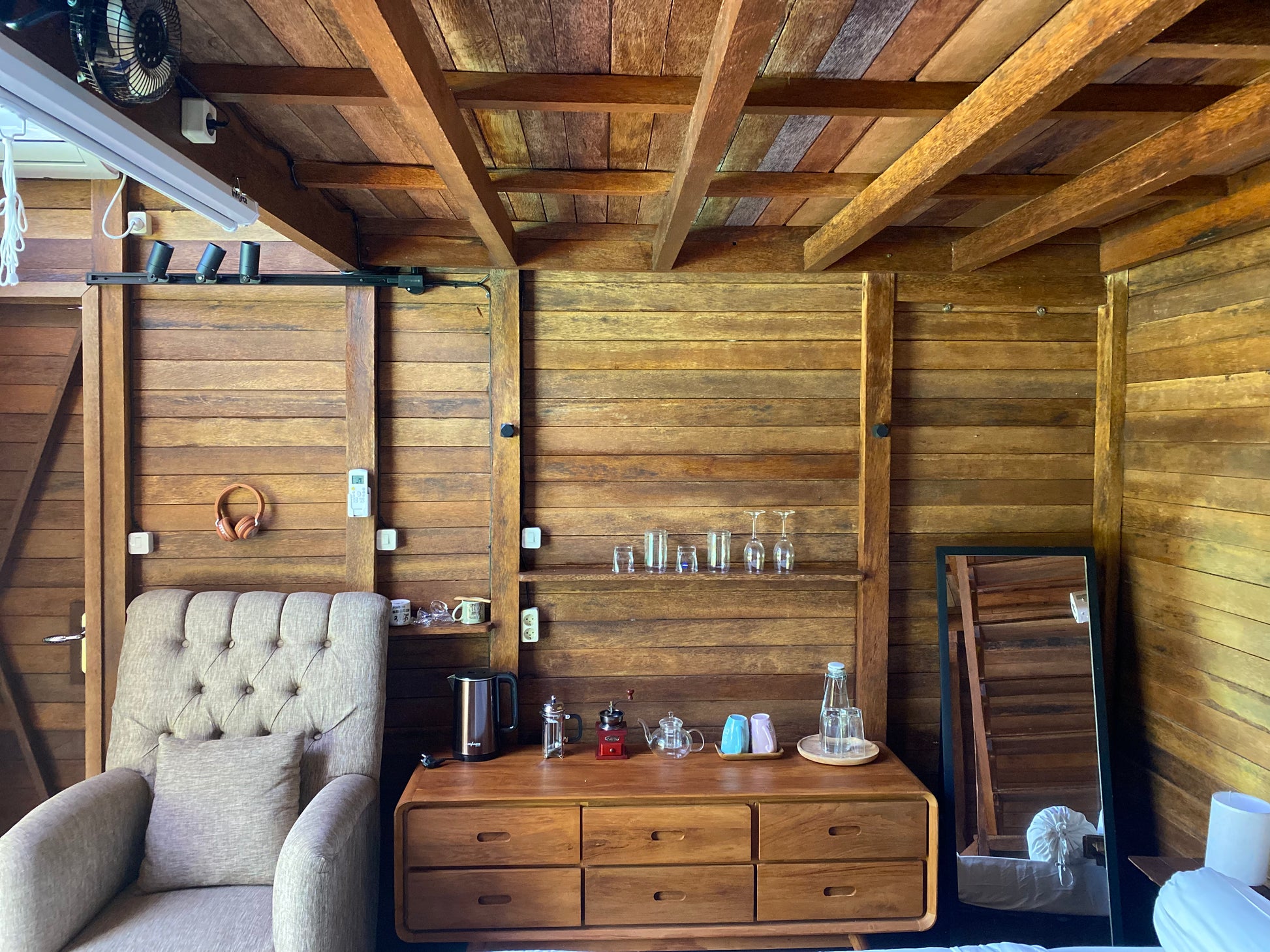 Beautiful wooden bungalow with mezzanine inside that serves for an extra single bed or sofa.