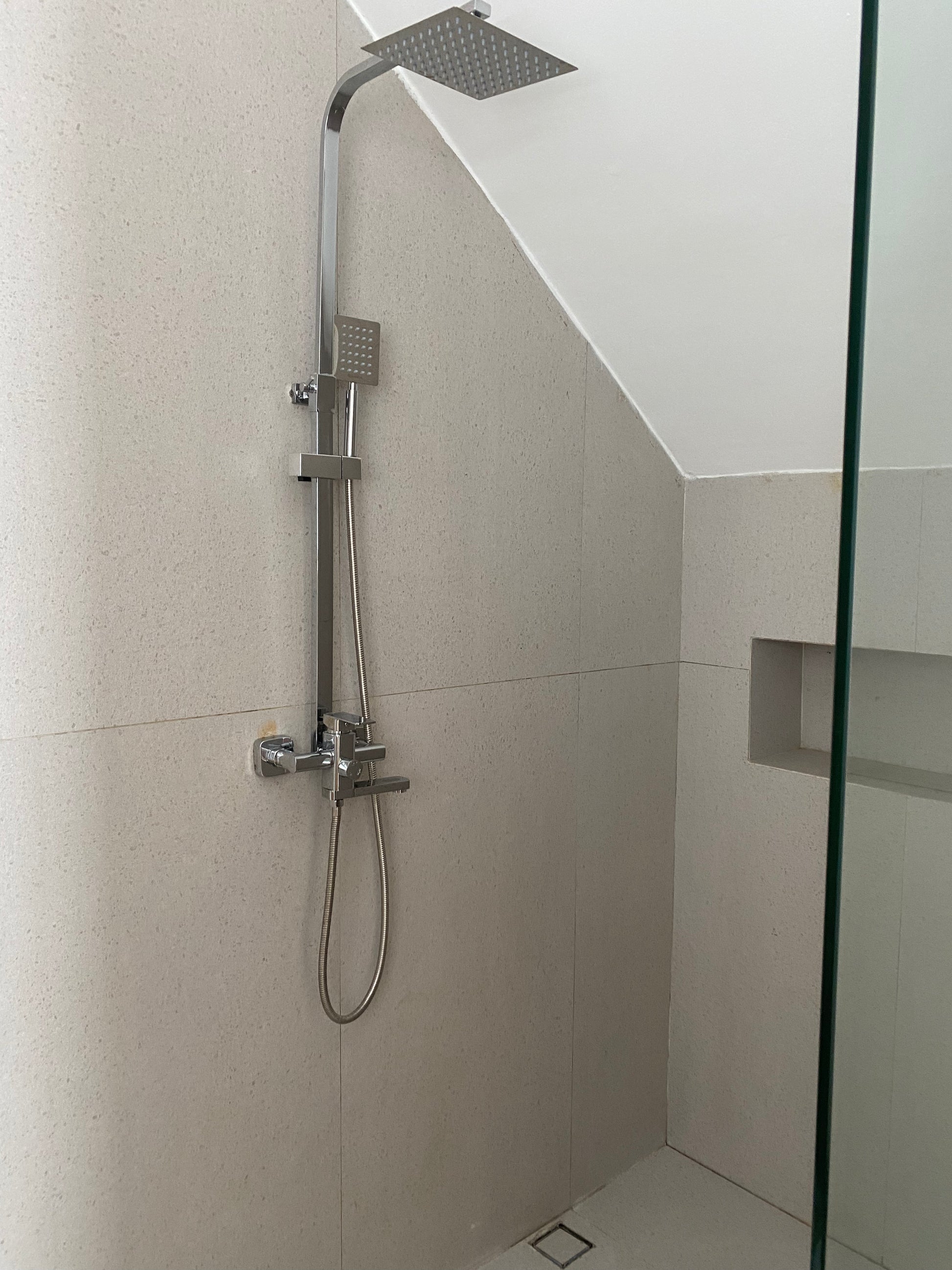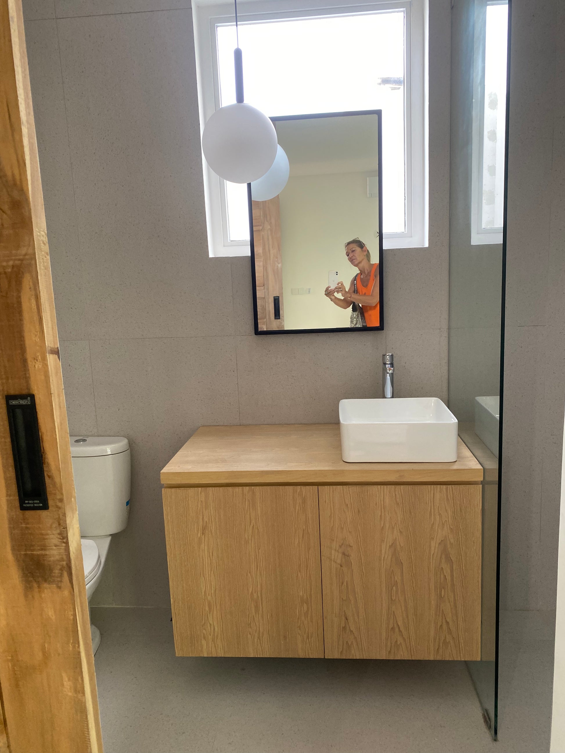 3 bedrooms with each an outdoor terras and attached bathroom. 1 downstairs, 2 upstairs. Living room with view on the swimming pool . Open space kitchen with marble finishing ,American fridge, build-in oven and microwave, space for washing machine & dryer and dining room